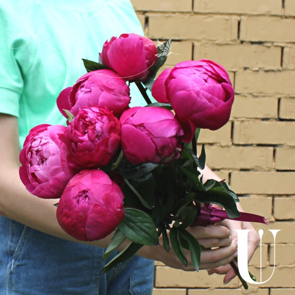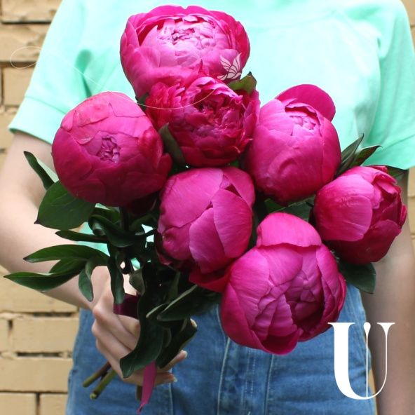 Монобукет из пионовидных роз сорта Лондон Ай в упаковке
