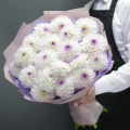 Монобукет из 25 пионовидных розовых роз в дизайнерской упаковке