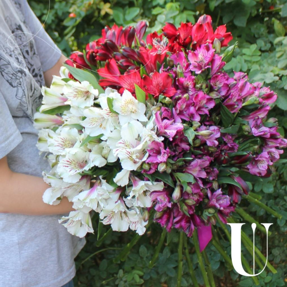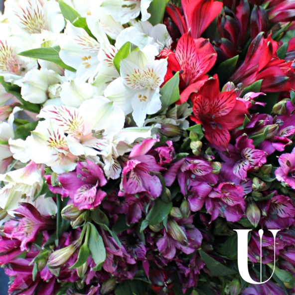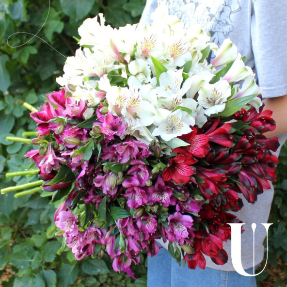 Монобукет из альстромерий микс в дизайнерской упаковке