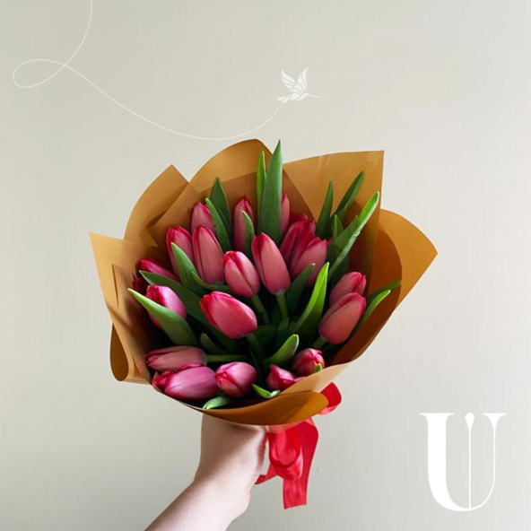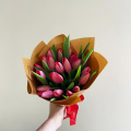 Мини-букет из 15 розовых тюльпанов в крафтовой упаковке