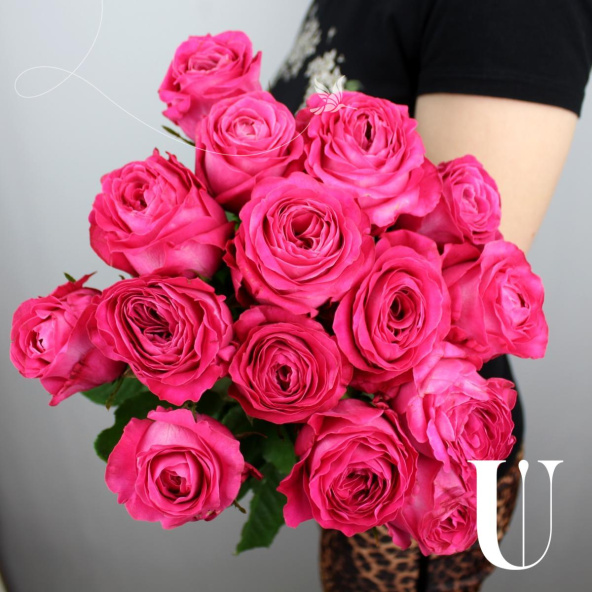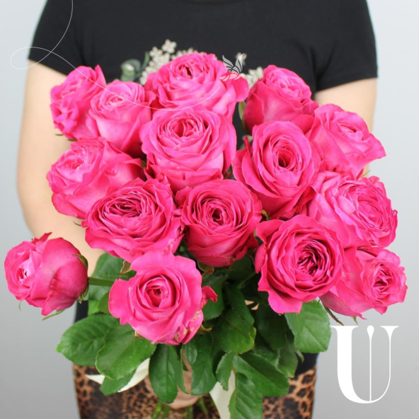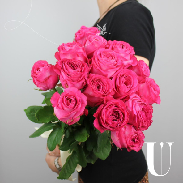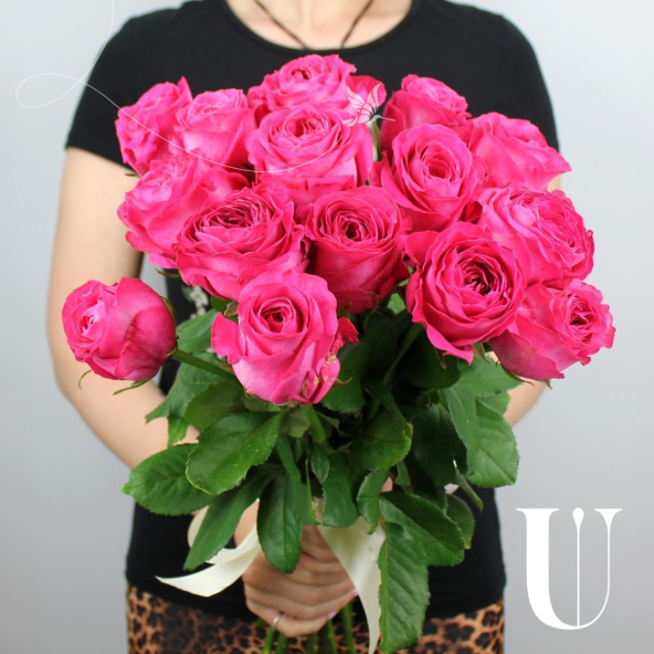 Монобукет из 15 роз сорта Валентина 60 см в упаковке