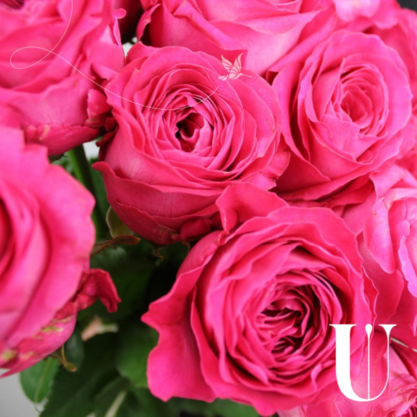 Монобукет из 7 роз Пинк Мондиаль в дизайнерской упаковке