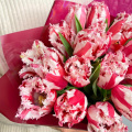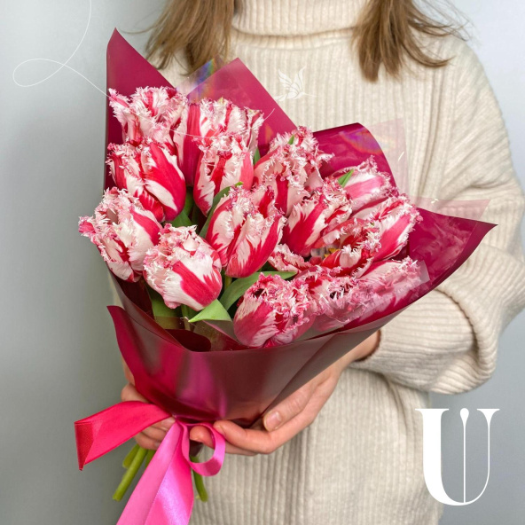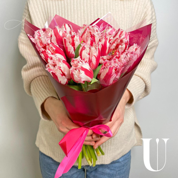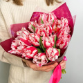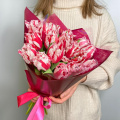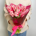 Мини-букет из 15 розовых тюльпанов в крафтовой упаковке