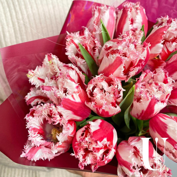 Монобукет из 15 белых тюльпанов в крафтовой упаковке