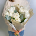 Монобукет из 5 роз Вайт Охара в дизайнерской упаковке