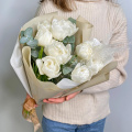Стильный моно букет из 11 белых кустовых роз в дизайнерской упаковке