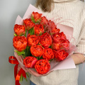 Монобукет из 25 роз сорта Ред Наоми в матовой пленке