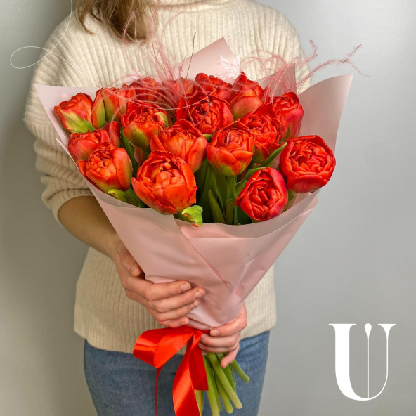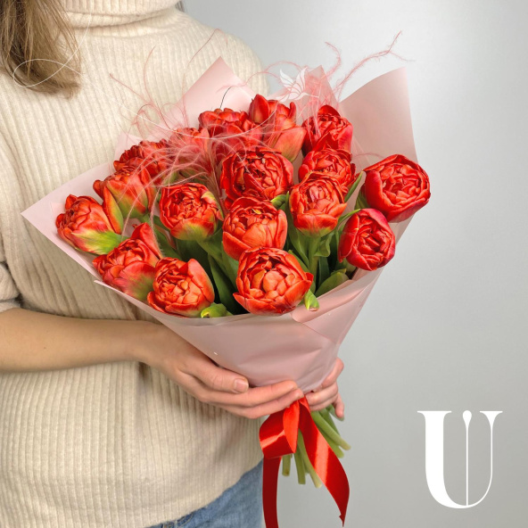 Роскошный, страстный и элегантный букет из красных французских роз сорта Нина