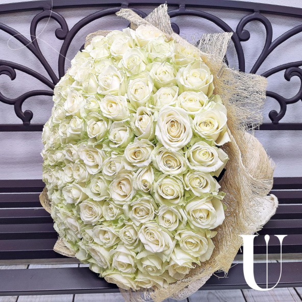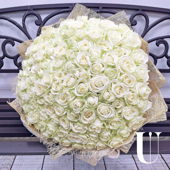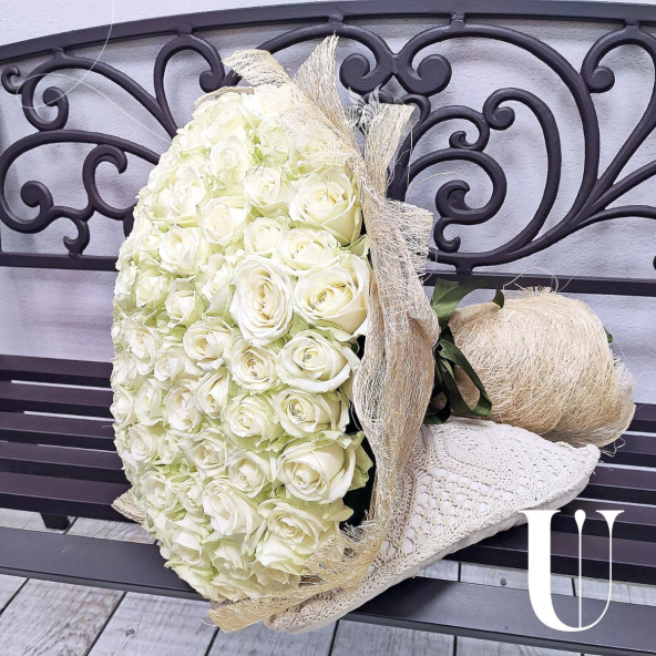 Монобукет из 37 белых роз в дизайнерской упаковке