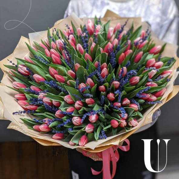 - Тюльпан, Россия, бело-розовый - 99 шт