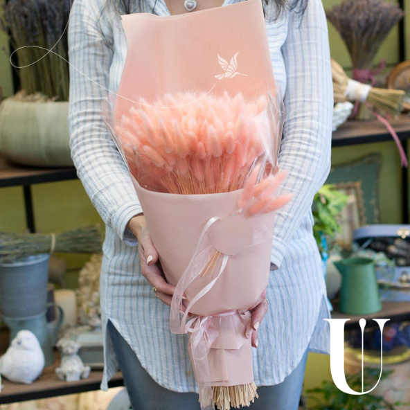 Монобукет из розовых эустом в стильной упаковке