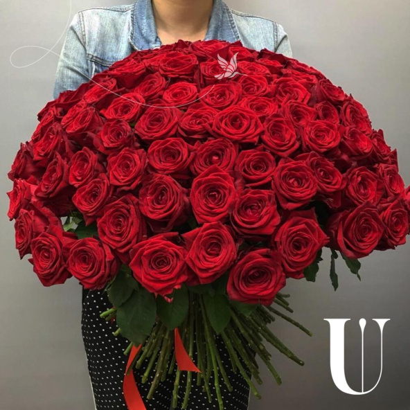 Огромный букет из 101 розы Ред Наоми в упаковке
