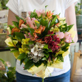 Монобукет из 15 альстромерий с зеленью в крафтовой упаковке