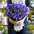 Монобукет из 9 фиолетовых хризантем в стильной упаковке