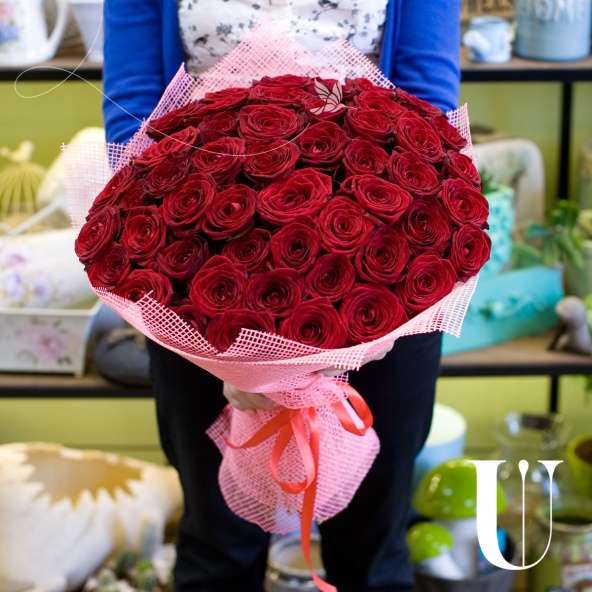 Исключительный монобукет из 51 розы сорта Аква