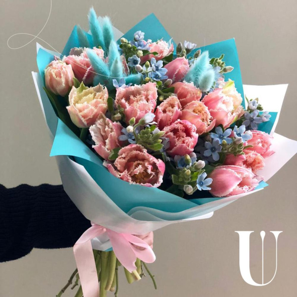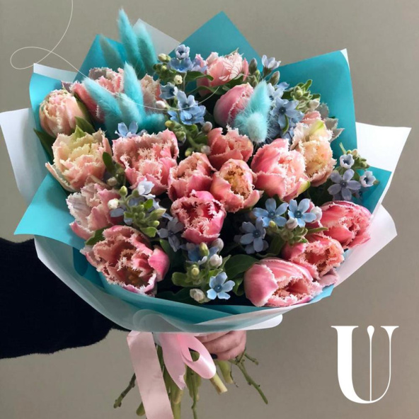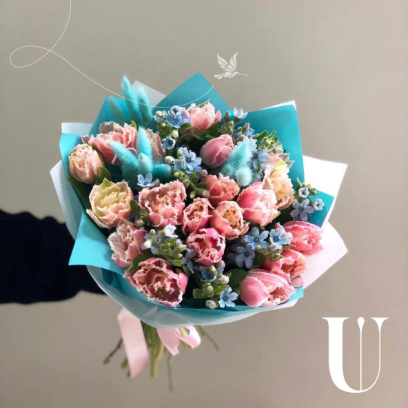 - Тюльпаны розовые пионовидные - 17 шт