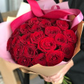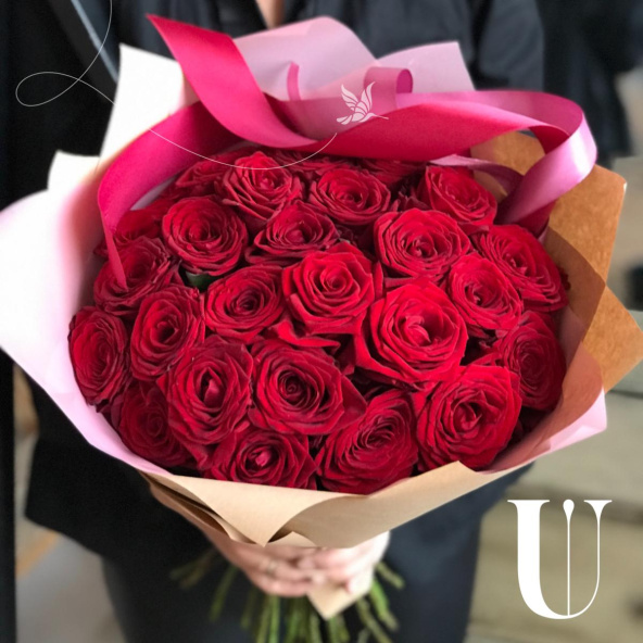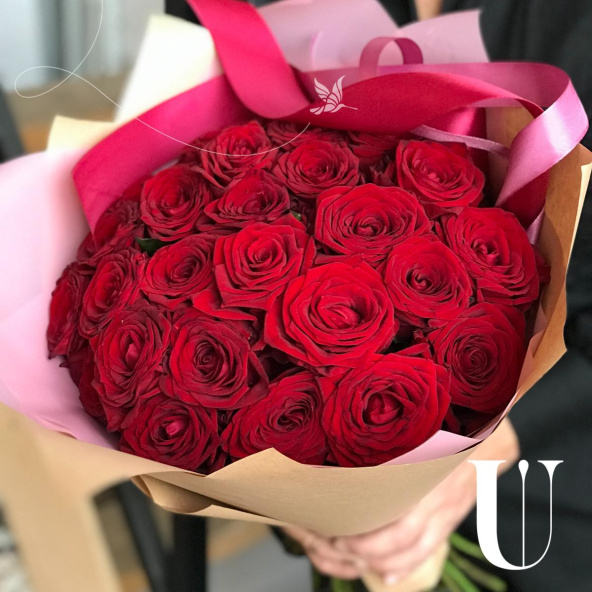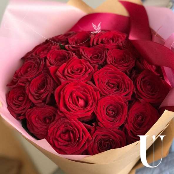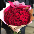 Монобукет из 25 роз сорта Ред Наоми в матовой пленке