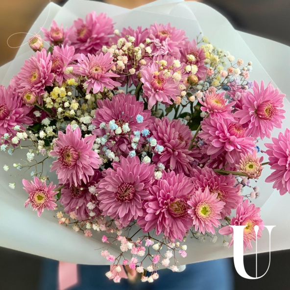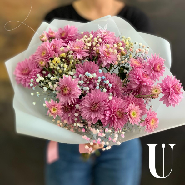 Мини-букет из ромашки Танацетум в дизайнерской бумаге