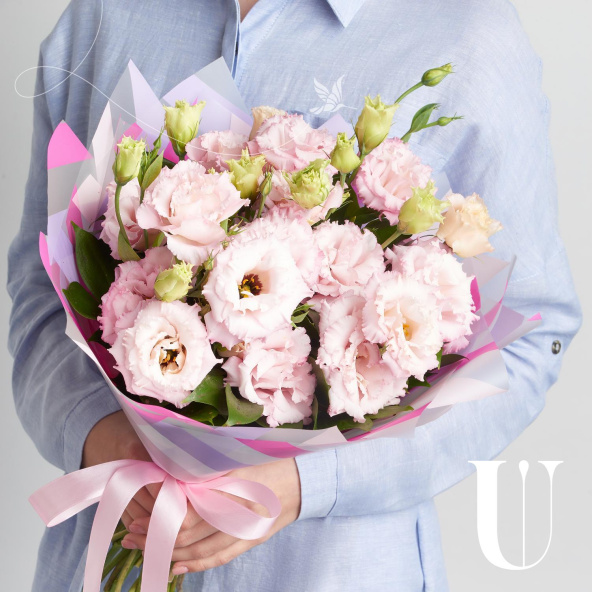 Композиция из нежно-розового лагуруса в дизайнерской упаковке