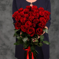 Монобукет из 101 белой розы 70 см в крафтовой упаковке