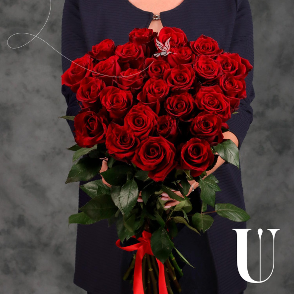 Монобукет из 25 розовых пионов в дизайнерской упаковке