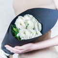 Букет из белых пионовидных роз и нежных кустовых роз в упаковке