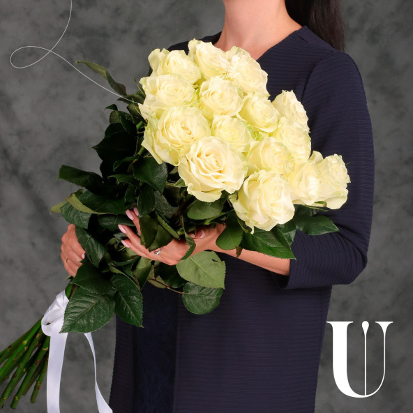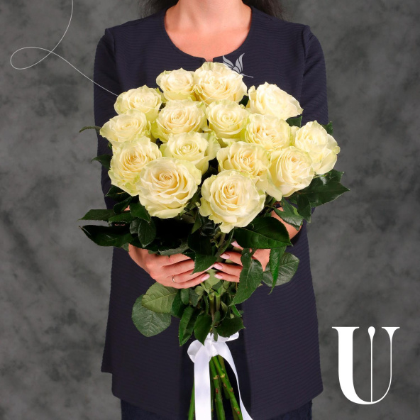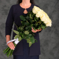 Монобукет из 51 кремовой розы 60 см в упаковке