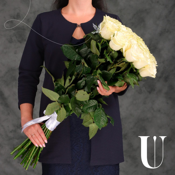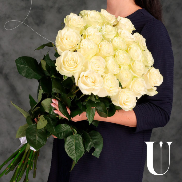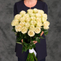 Роскошный монобукет из 35 белых эквадорских роз 70 см