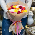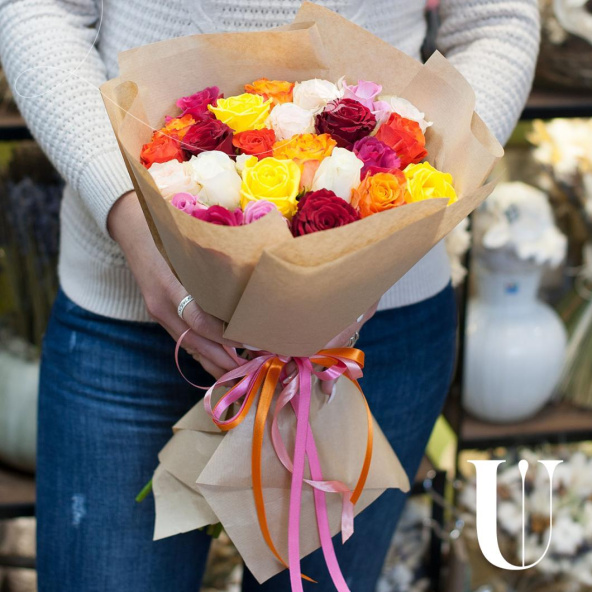 Монобукет из роз микс в крафтовой упаковке