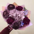 Букет из фиолетовых хризантем сорта Деми в глянцевой пленке