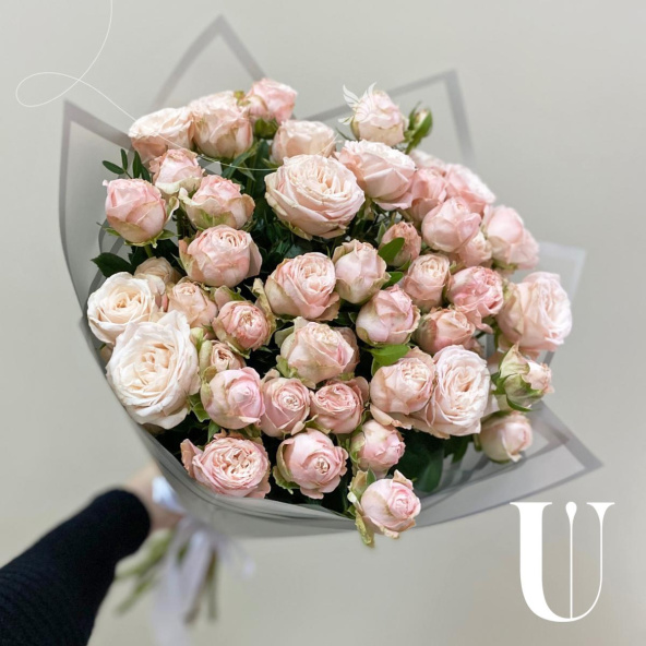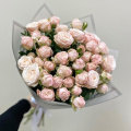 Нежные кустовые пионовидные розы в дизайнерской упаковке