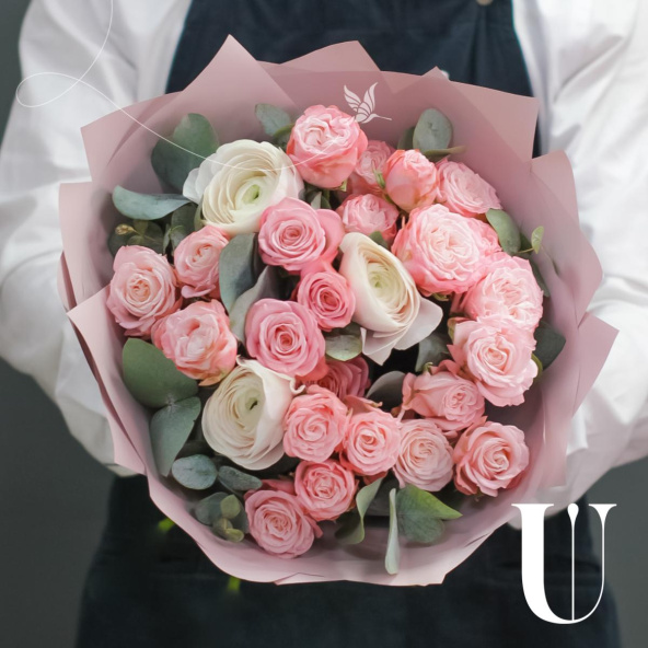 - Роза кустовая пионовидная, Бомбастик, розовая, 60 см. - 6 шт