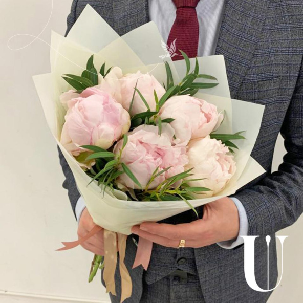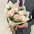 Монобукет из 3 розовых пионов в упаковке