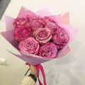 Монобукет из нежно-розовых кустовых пионовидных роз в упаковке
