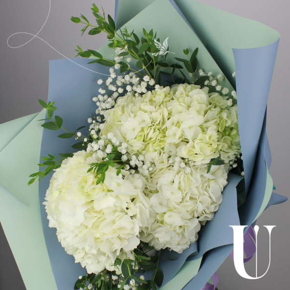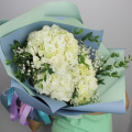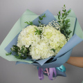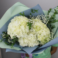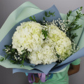 Монобукет из белых кустовых хризантем в дизайнерской упаковке