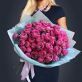 Букет из 35 кустовых розовых роз misty bubbles. Упаковка-корейская пленка.