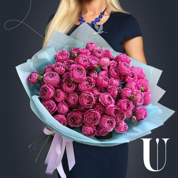 Большой букет из кустовых пионовидных роз Мисс Бомбастик