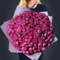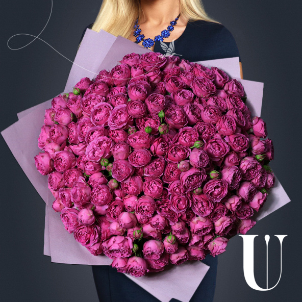 Букет из 51 кустовой розовых розы misty bubbles. Упаковка-корейская пленка