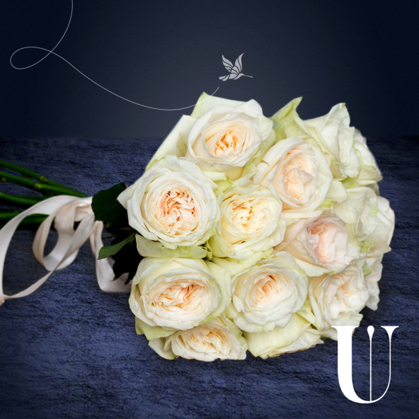 Монобукет из 15 роз Вайт Охара в розовой упаковке