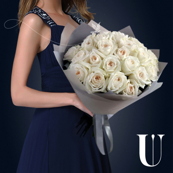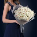 Букет из 25 пионовидных роз white ohara. Упаковка-корейская пленка