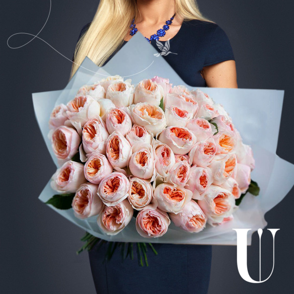 Букет из 51 пионовидной розы juliet . Упаковка-корейская пленка.