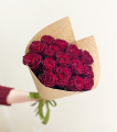 Монобукет из 19 роз сорта Гран При 70 см в крафтовой упаковке