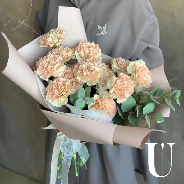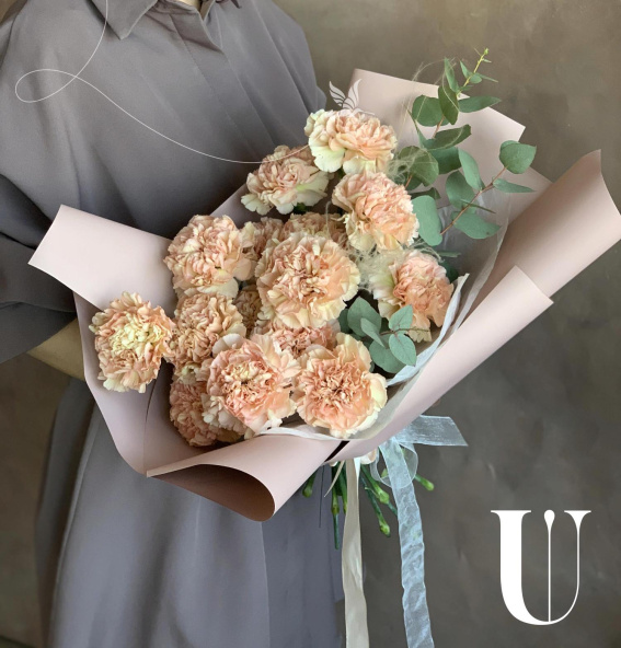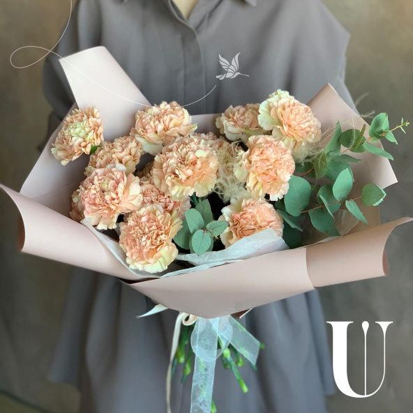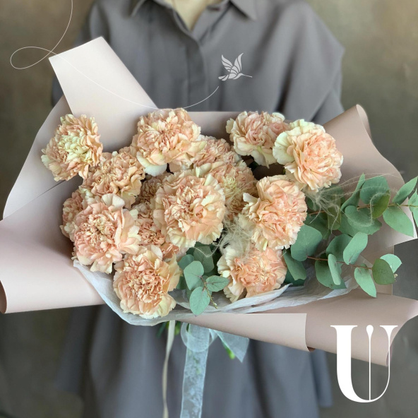 Монобукет из 15 диантусов Гипноз в дизайнерской бумаге