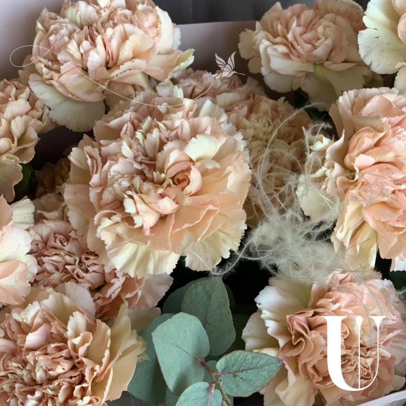 Букет из 9 пионовидных роз кремового оттенка сорта Шиммер в стильной упаковке