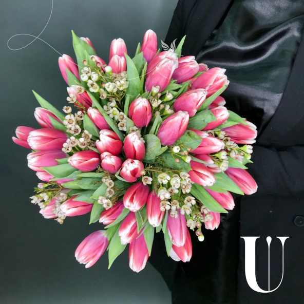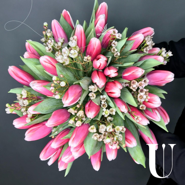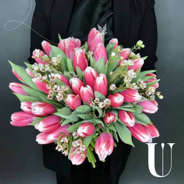 - Тюльпан, Фокстрот, бело-розовый - 45 шт