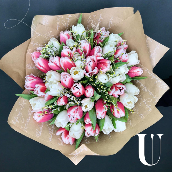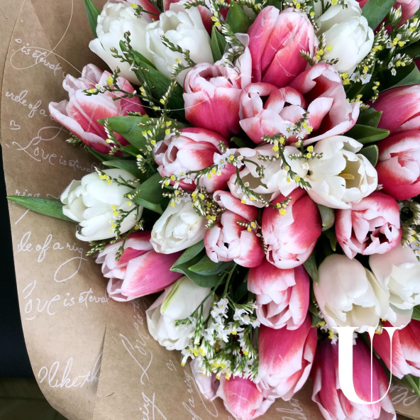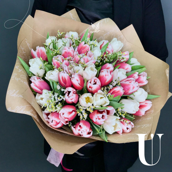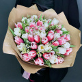- Тюльпан, Россия, бело-розовый - 24 шт