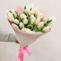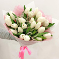 Монобукет из 25 фиолетовых тюльпанов в упаковке