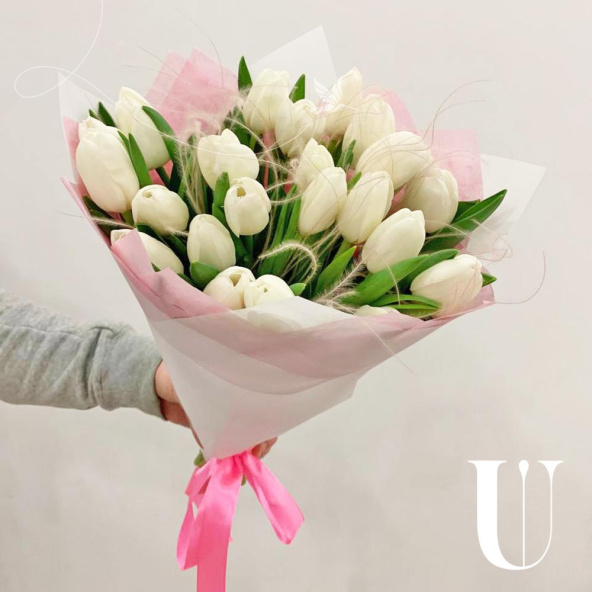 Нежнейший ароматный букет из 5 белых лилий в лаконичной белой упаковке