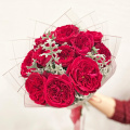 Монобукет из 19 красных кустовых роз сорта Мирабель 60 см в упаковке