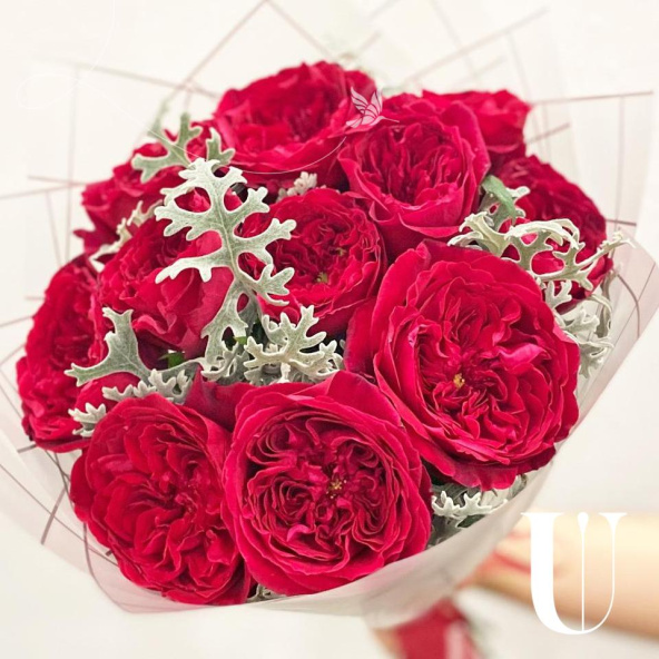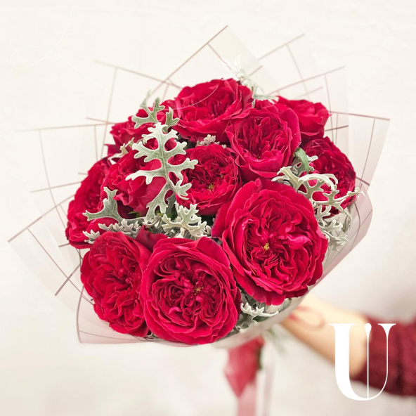 Букет из малиновых кустовых пионовидных роз Мисти Бабблз